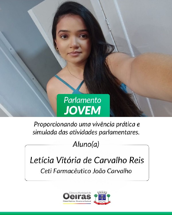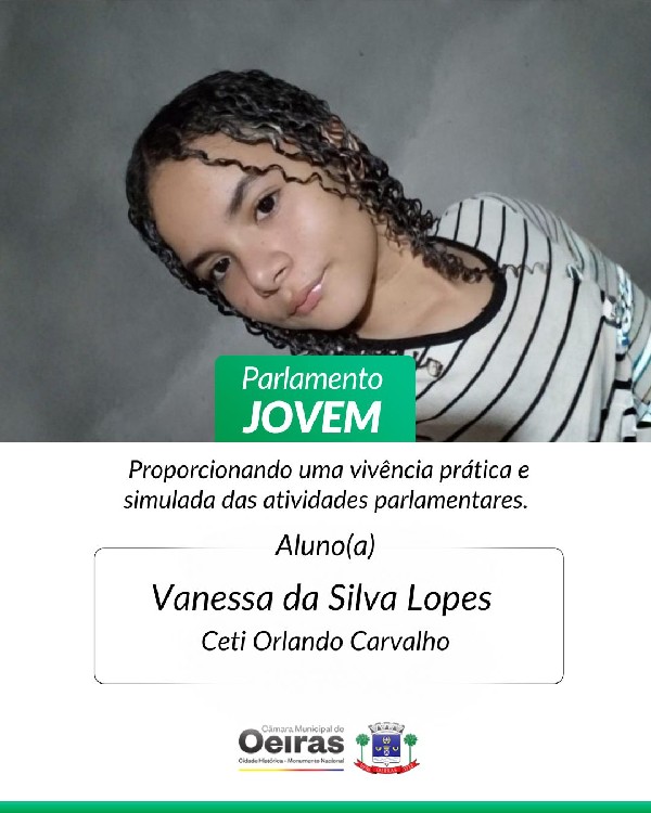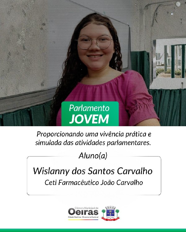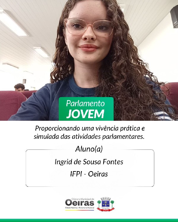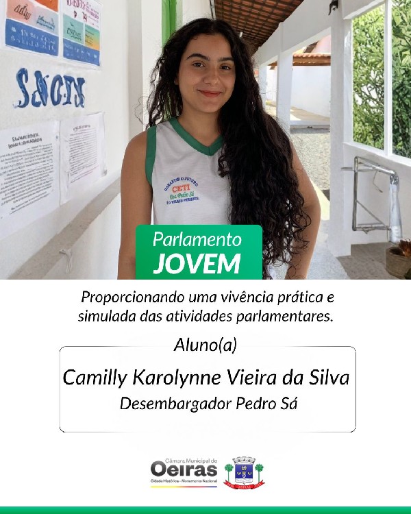 O Parlamento Jovem de Oeiras, criado por meio do Projeto de Resolução nº 05, aprovado pela Câmara Municipal em sessão realizada no dia 1º de setembro de 2025, iniciou suas atividades nas escolas do município. A proposta, em tramitação desde 4 de agosto, é executada pela Escola do Legislativo e tem caráter pedagógico voltado à formação cidadã de jovens estudantes.