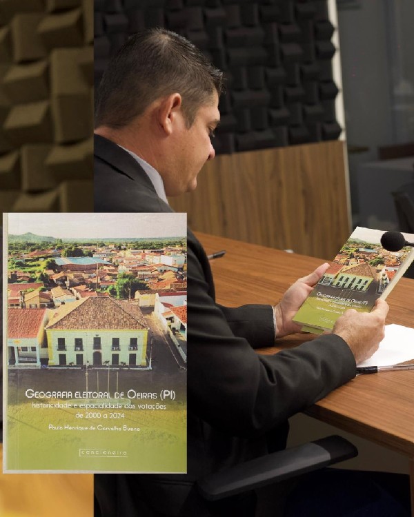 O professor Paulo Henrique lançou, nesta segunda-feira, 16, o livro Geografia Eleitoral de Oeiras (PI) durante sessão ordinária da Câmara Municipal de Oeiras, no Sul do Piauí. A obra analisa a historicidade e a espacialidade das votações no município entre os anos 2000 e 2024.